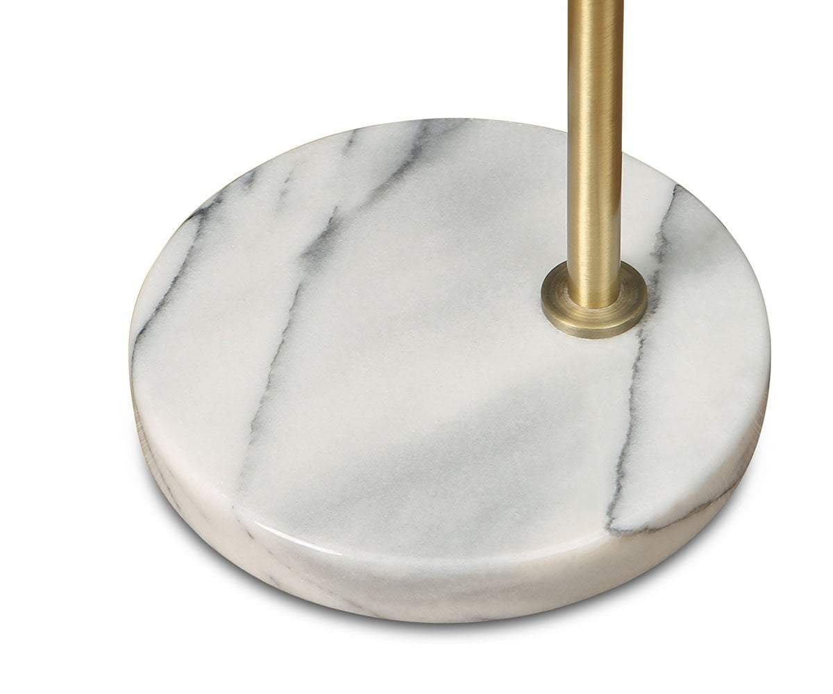 The Aerlig floor lamp displays an intriguing design that blends vintage style with modern flair, resulting in an eye-catching piece wherever it stands. A round glass globe suspends from the metal tube connected to the tall stand in a matte brass finish. Grounded by the round marble base, this lamp light is a handsome addition to your space.