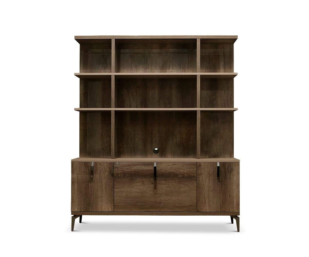 Expand the storage and style of your Akana credenza with this piece. It’s finished with a high gloss that highlights the wood grain gorgeously, and adds an array of additional shelves to help keep your essentials organized.