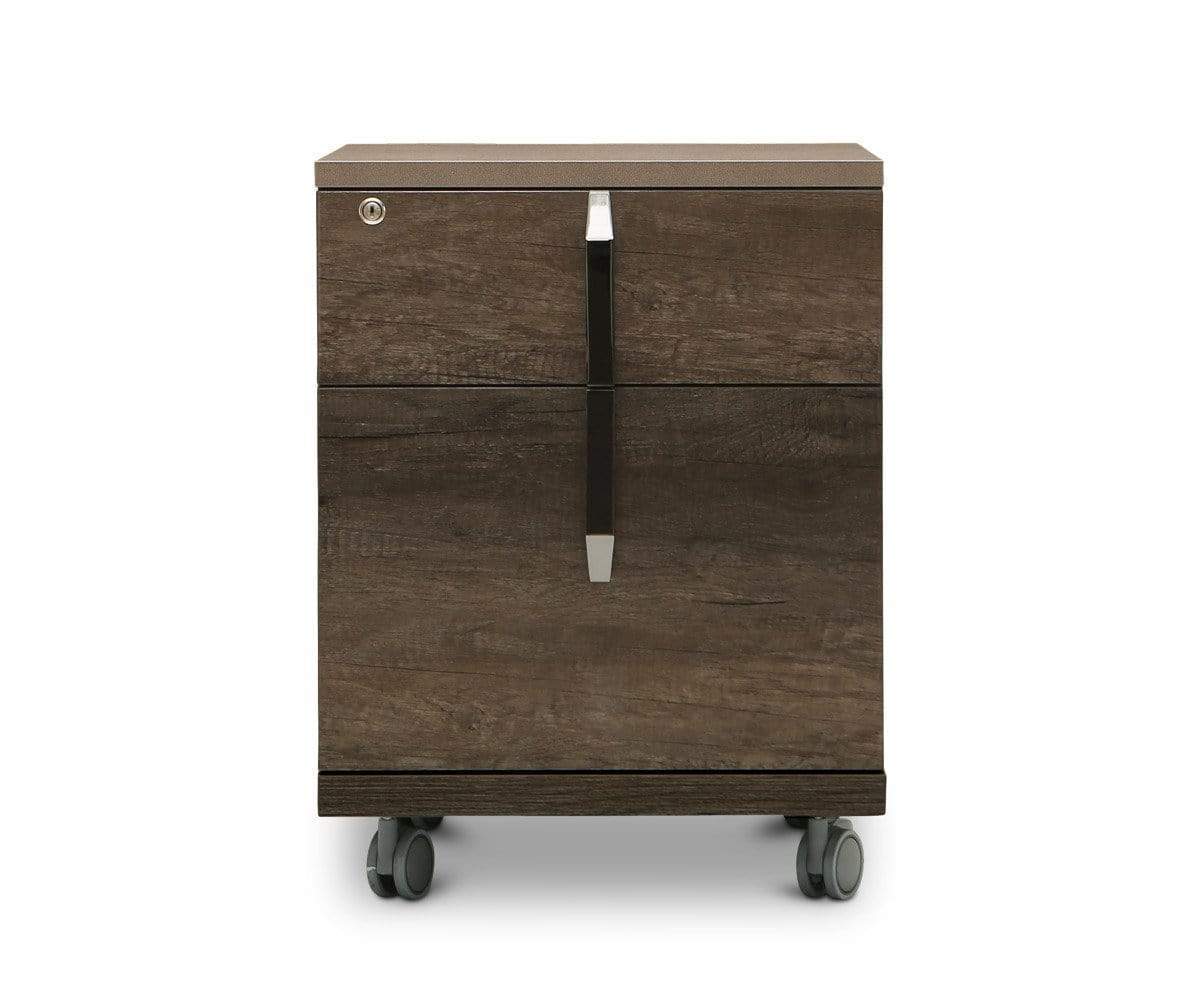 This is storage that moves. We love the Akana mobile file pedestal for so many reasons. Sturdy casters provide mobility. Two drawers keep your necessities on hand. Plus, the high-gloss finish accentuates the gorgeous wood grain, and smoky chrome hardware adds a luxe flourish.