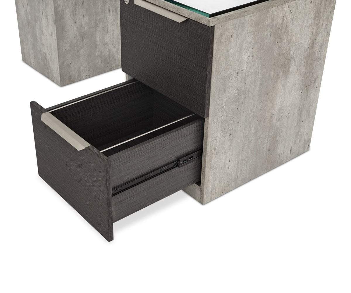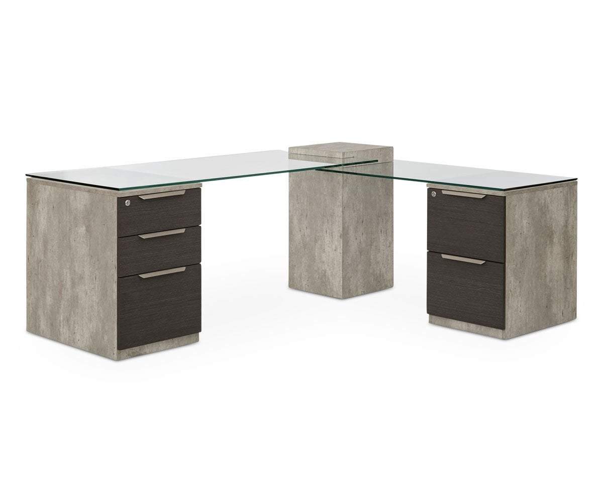 The Alva Executive desk takes on an industrial look and adds classy sophistication with its clear glass surface area. Designed to provide an expansive workspace, the L-shape formation also adds visual interest in your office. If you prefer a clean desk, tuck supplies away in the two storage cabinets that lock for security. Use the Alva Executive desk as the foundation for your professional office space and enjoy conducting business better than usual.