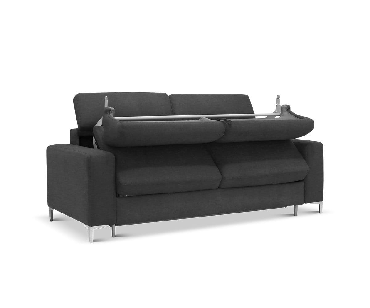 The Andrew queen sleeper brings attractive modern style to your home and makes hosting overnight guests a breeze. Thick, plush cushioning provides comfort and support. Adjustable headrests are perfect for switching from a conversational lounge-like feel to movie and entertainment mode. With a solid hardwood frame and chrome legs, it’s built to stand the test of time. Upholstered in our soft, unique LiveOn Performance Fabric, this sleeper sofa is moisture-repellant, stain-resistant, and designed for heavy-duty wear. A queen gel mattress is included.
