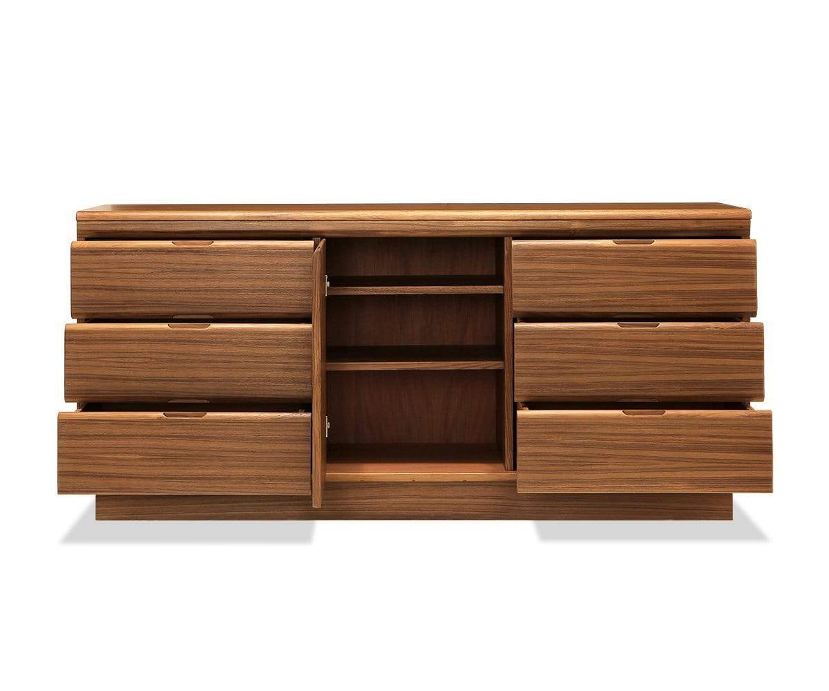 The Anisa double dresser is ideal for making a statement in larger bedrooms. Six large drawers and a single cubby provide ample storage space for your wardrobe. It's crafted with mix of solid teak and teak veneers. A natural finish to allows the wood grain to shine through.