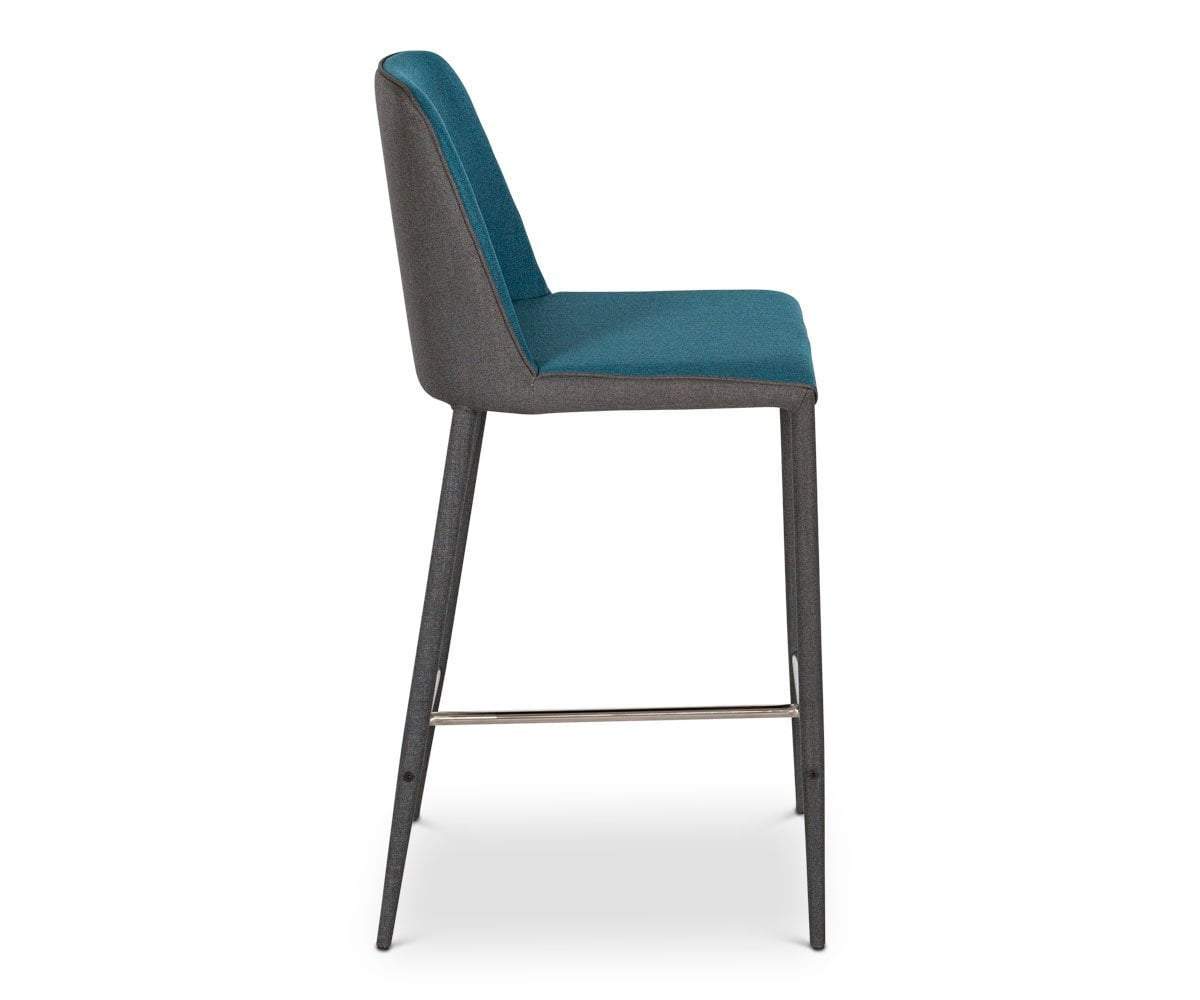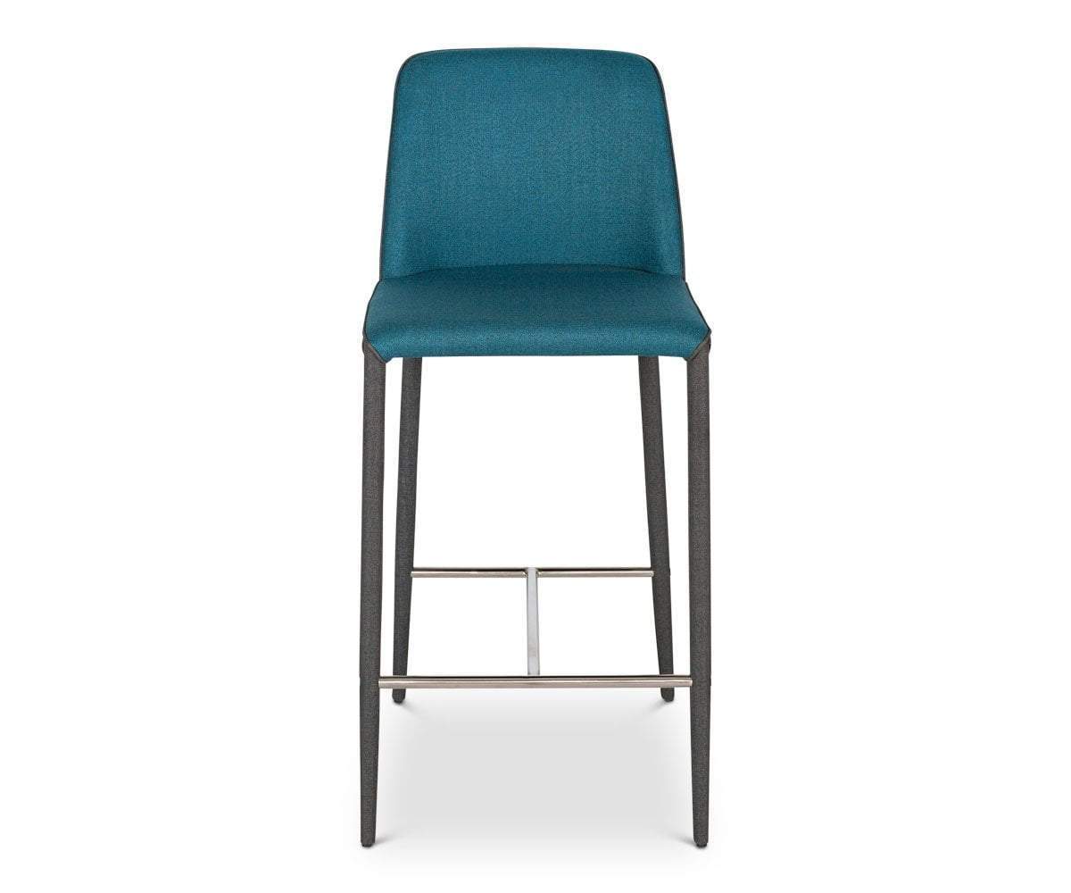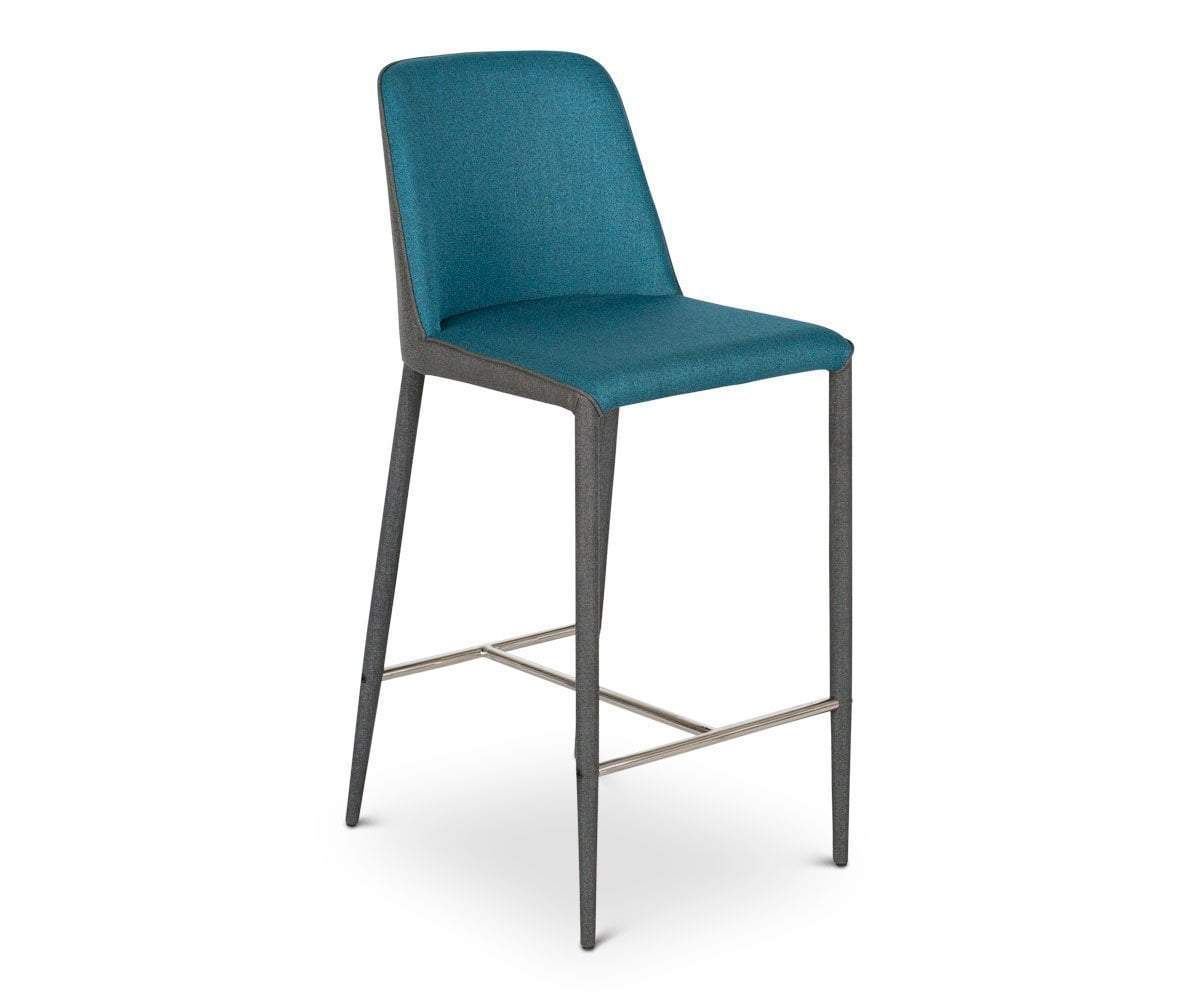 The Avanja counter stool adds immense style and comfort to your home bar. From seat to legs, this modern design is wrapped in two complementary shades of fabric, which easily pairs with any flooring our counter type.