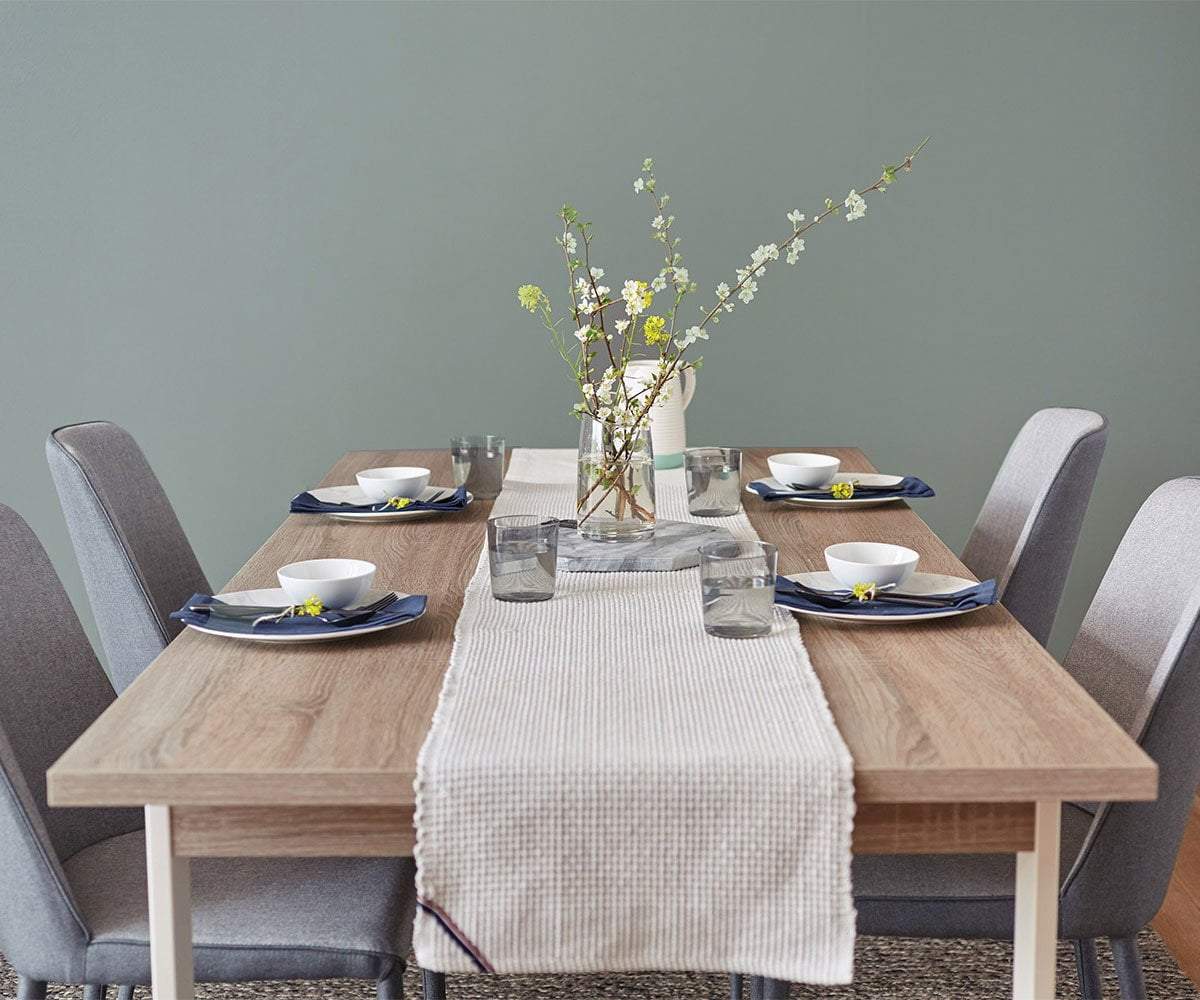Add softness to your seating arrangement with the Avanja dining chair. Wrapped in two complementary shades of fabric, from seat to legs, this modern design is perfect for pairing with any flooring choice or dining table finish.