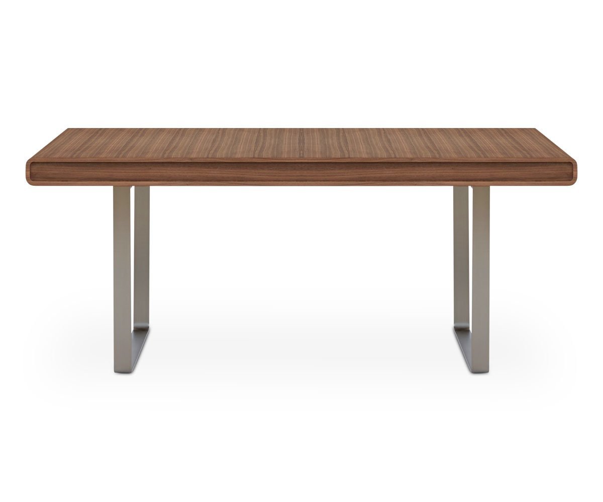 The smooth wood tabletop of the Baptisia dining table with inset sides and wrap-around ends give it both depth and personality, while the beauty of this piece is continued in the brushed stainless steel legs. Set your dining room apart from the rest as you enjoy a meal with guests in contemporary fashion and let the conversation flow.