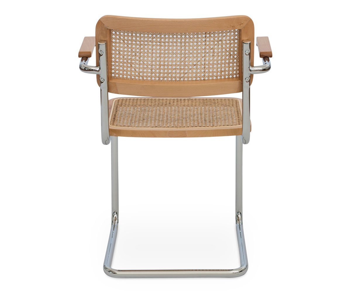 With an unmistakable mid-century look, the Bendt armchair masterfully combines elements to create an appealing addition to your dining room. The distinctive design features a cane seat and backrest bordered in solid European beech wood which are secured to the cantilevered metal frame finished in polished chrome. Armrests made of the same materials wrap around to allow for a comfortable resting position making mealtime, quality time.