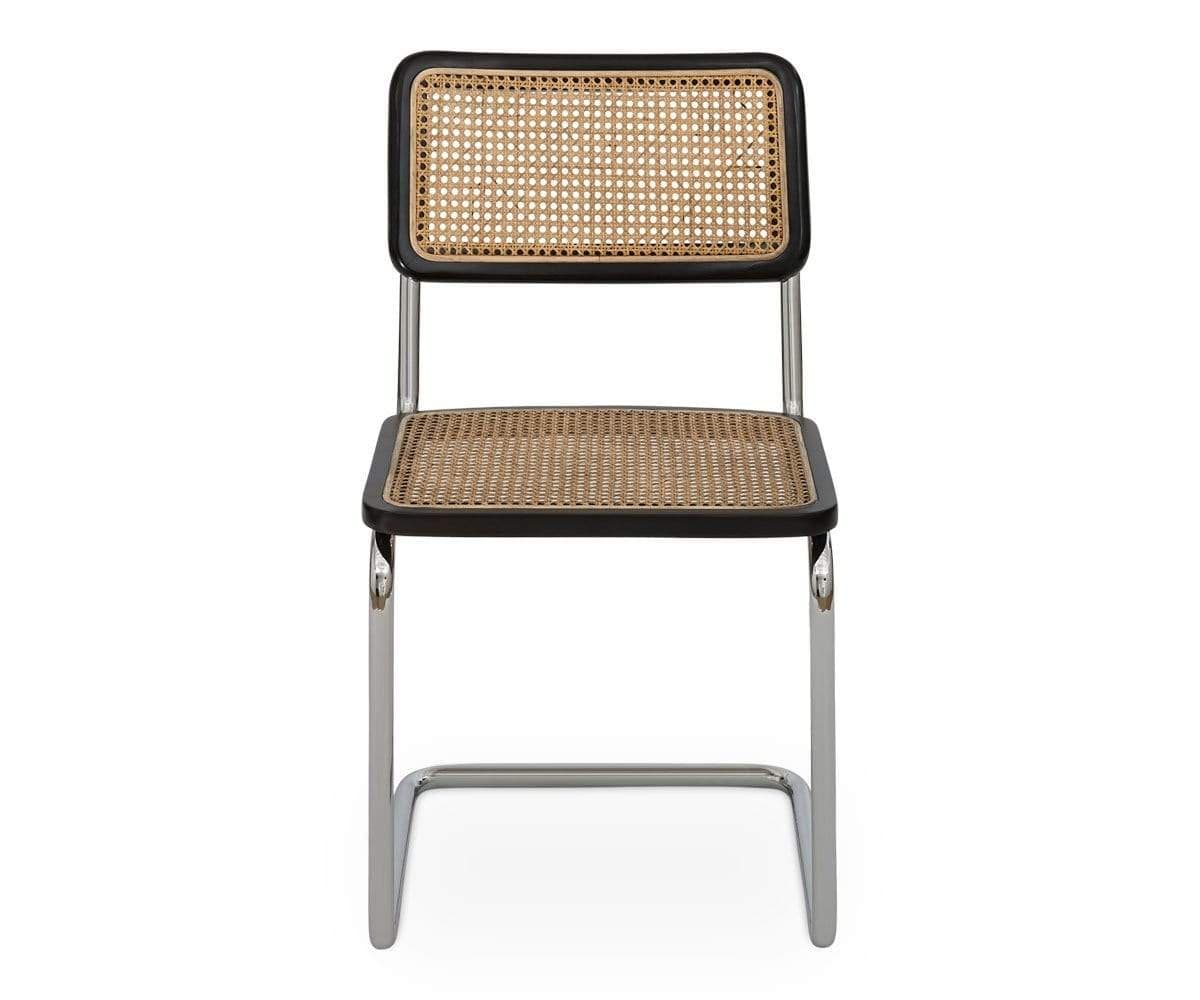 The mix of materials and cantilevered form of the Bendt chair combine to create an intriguing addition not only to your dining area, but any room in your home. Distinctly mid-century by design, it features a cane seat and backrest bordered in solid European beech wood which are secured to the tubular metal frame in polished chrome. A true classic, this seat is built to transition through style trends for years to come.
