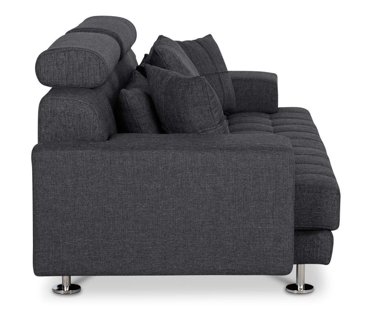 Attractive from every angle, the Cepella sofa offers all around comfort with a low-profile and wide track arms. Chrome legs and detailed tufting create an overall modern look.