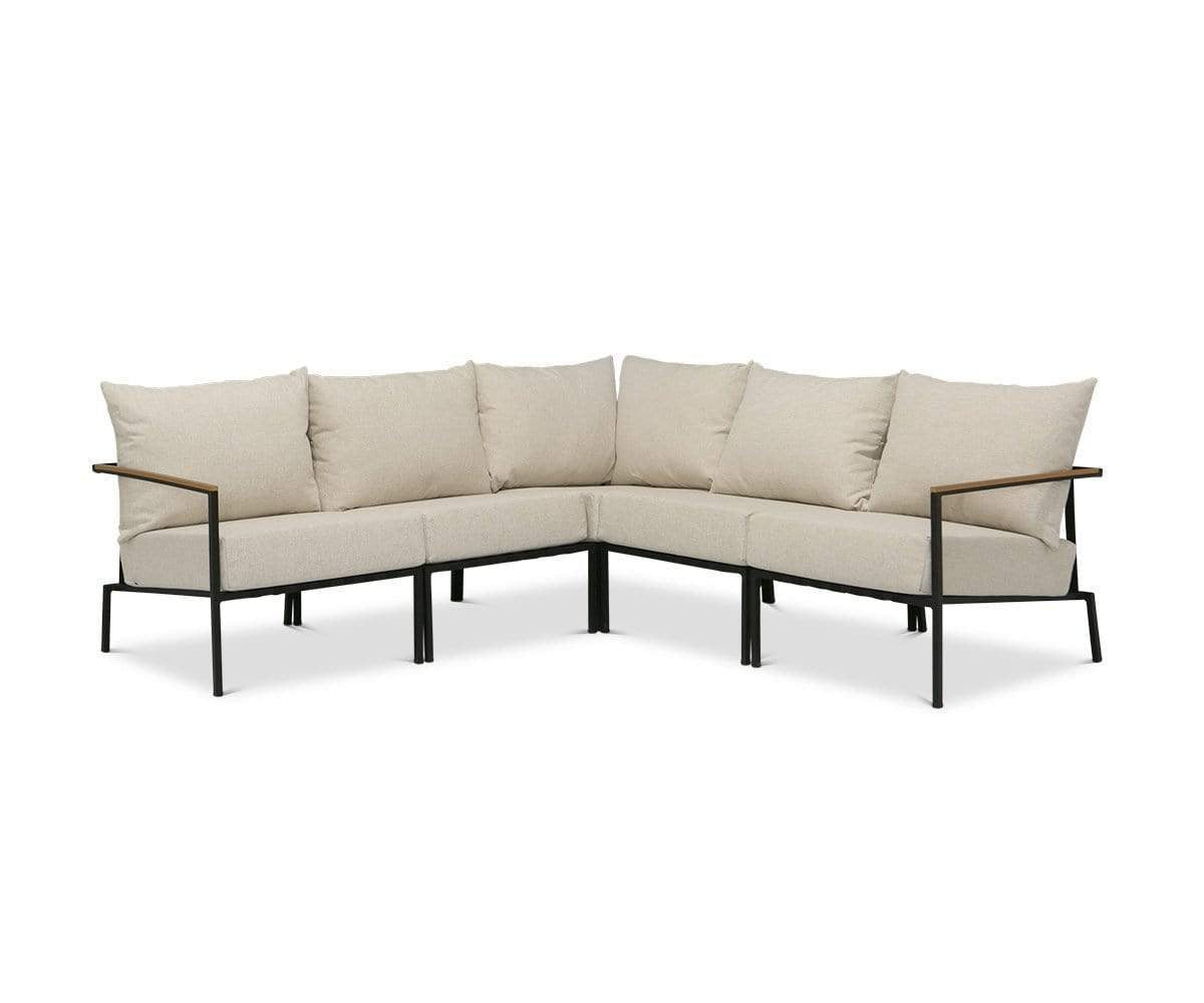This is outdoor R & R at its finest. With the Da Costa sectional, you're getting a mix of performance, comfort and style you won't find elsewhere. The black powder coated metal frame contrasts with the beige cushions and faux-teak arm details for a resort-worthy look. The cushions are wrapped in Olefin outdoor fabric, which features a color fastness rating of 7-8 for powerful fade-resistant performance. It's also water-repellent, stain-resistant and mildew-resistant. Pair with other pieces in the Da Costa collection to turn your outdoor area into a relaxing oasis.