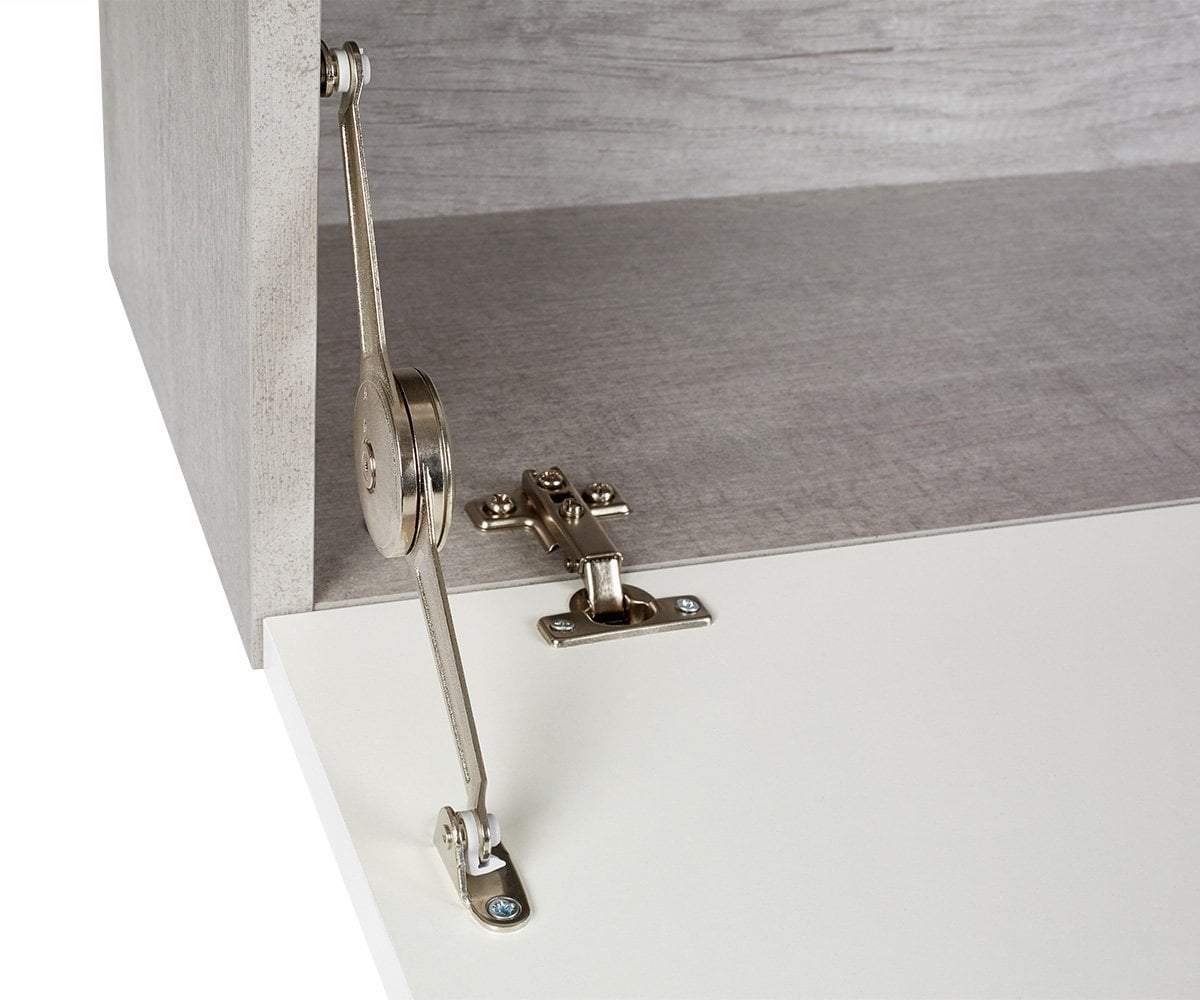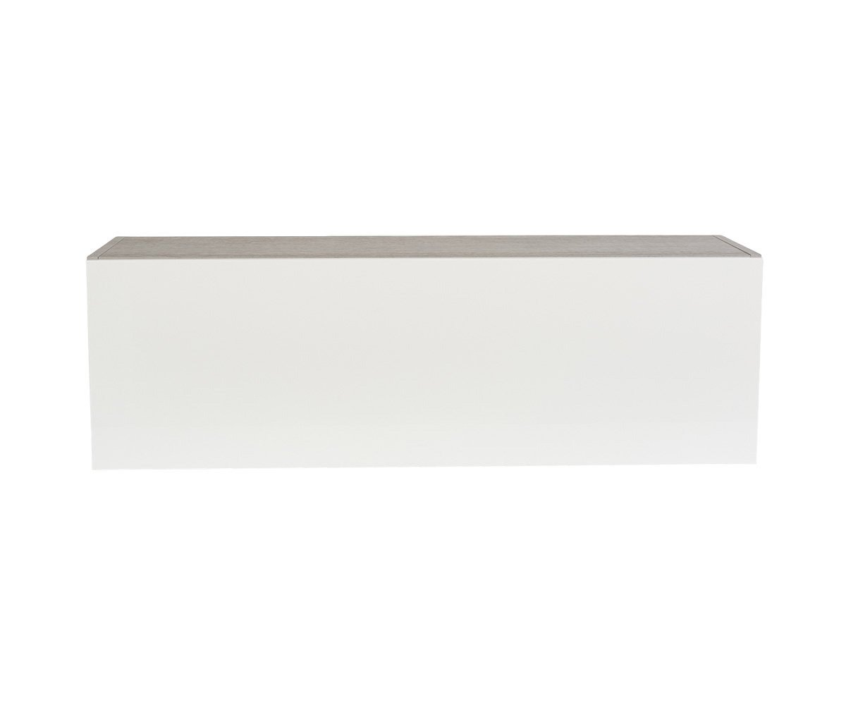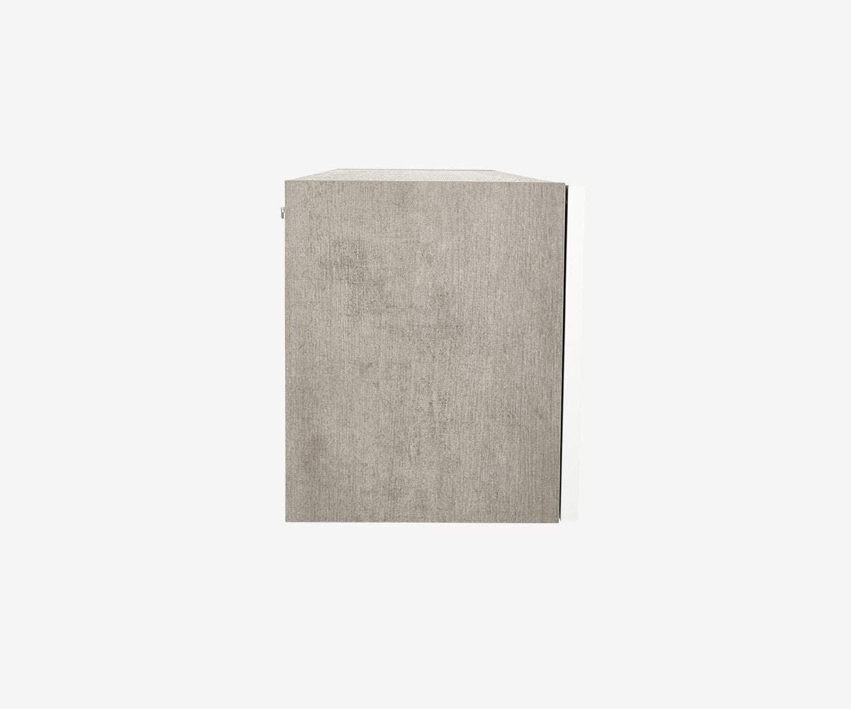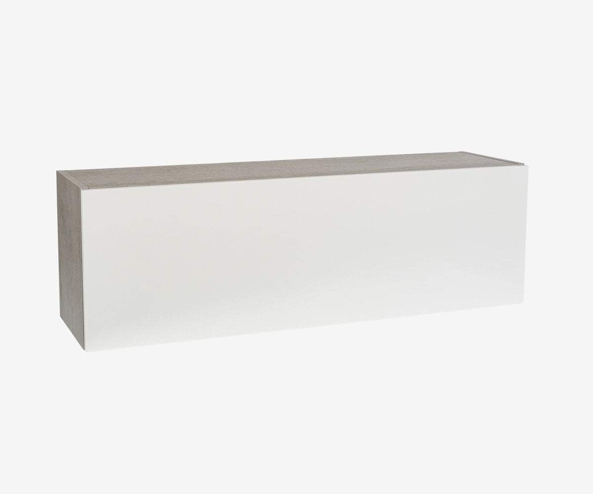 The Danne horizontal wall unit is a sleek, stylish storage cabinet that adds a cool, modern vibe to your space. Long and low-profile in design with a single drop-down door, you will enjoy choosing which items to organize and hide away. Crafted in Italy in a sturdy cement-look melamine body with a white door in a high gloss finish, this piece pairs well with similar storage units or stands alone handsomely on your wall in any room of your choice.