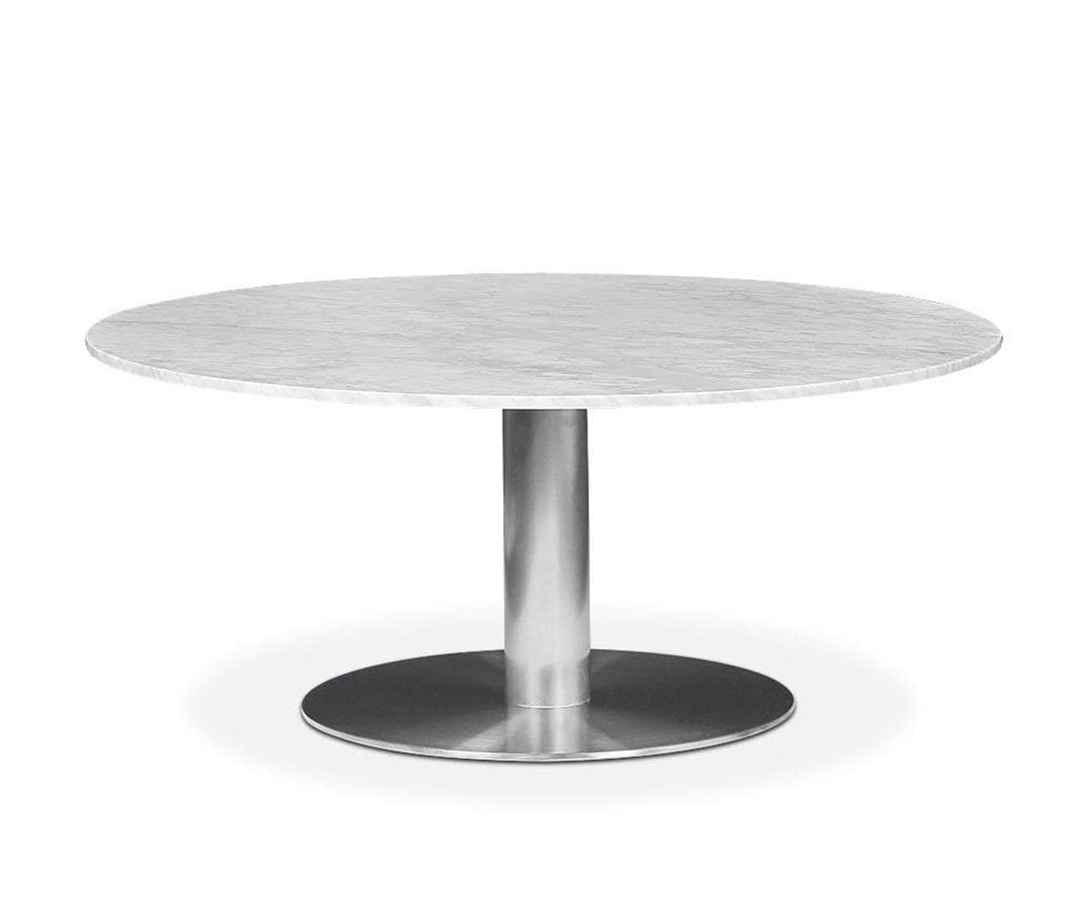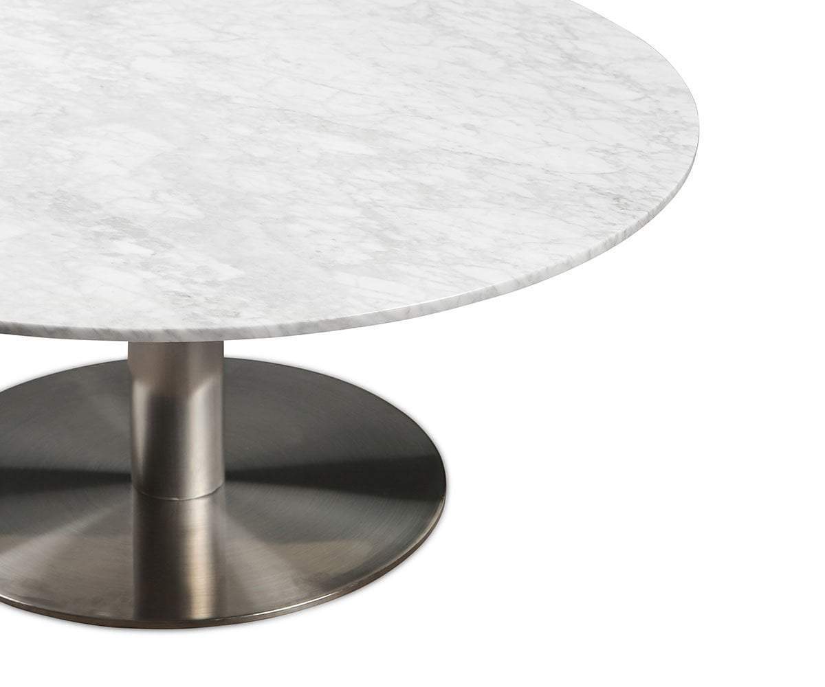 The Deilig coffee table blends high quality materials and timeless design to create a style that is always on-trend. While its round marble top is visually intriguing, the supporting metal pedestal base provides shine as well as stability. This piece gives a sleek, modern vibe intended to complement your living room decor.